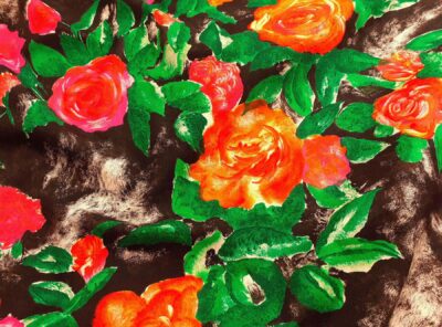 Popeline in cotone satinato fantasia floreale fondo neroQuesto tessuto in puro cotone egiziano doppio ritorto, è un tessuto liscio, compatto e allo stesso tempo morbido e setoso al tatto. Si contraddistingue per una notevole lucentezza, una resistenza all’usura, al tempo e ai lavaggi. È perfetto per confezionare abiti e blouse ma può essere usato anche per capispalla.