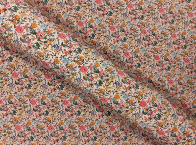 Crepe de Chine in seta fantasia floreale su fondo avorioLa Crepe de Chine in pura seta, prodotta a Como, è un tessuto semi-opaco che si ottiene da una trama opaca che contrasta la lucentezza dell’ordito. Caratterizzata da mano leggera e morbida viene utilizzata per realizzare camicie, top, abiti e gonne morbide, pantaloni eleganti, lingerie etc.