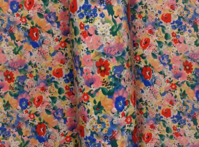 Popeline in cotone satinato fantasia floreale fondo rosso.Questo tessuto in puro cotone egiziano doppio ritorto, è un tessuto liscio, compatto e allo stesso tempo morbido e setoso al tatto. Si contraddistingue per una notevole lucentezza, una resistenza all’usura, al tempo e ai lavaggi. È perfetto per confezionare abiti e blouse ma può essere usato anche per capispalla.