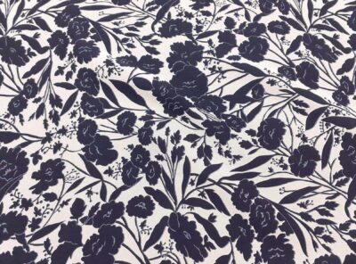 Tessuto in georgette di viscosa fantasia floreale fondo neroLa georgette in viscosa, è un tessuto leggero, semi-trasparente, con superficie crespa. La georgette ha un bellissimo drappeggio ed è utilizzabile per la realizzazione di abiti anche a più strati e camicie. Si consiglia di bagnare il tessuto prima della confezione in quanto si restringe in modo sensibile.