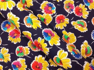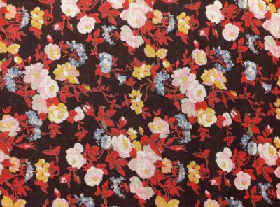 Twill in cotone e viscosa fantasia floreale fondo bluQuesto tessuto in cotone e viscosa è un tessuto di peso medioleggero, liscio, compatto e allo stesso tempo morbido. Perfetto per confezionare abiti morbidi, gonne e blouse.