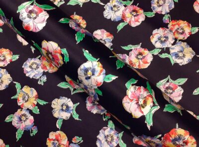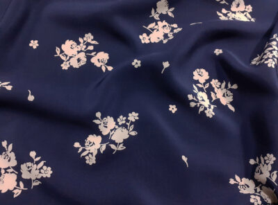 raso di seta fantasia floreale fondo blu scuroIl raso di seta pura è caratterizzato da una mano morbida, una lucentezza elegante e una buona caduta. Perfetto per la realizzazione di abiti, camicie, top e foulard.