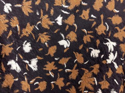 Seta jacquard fantasia floreale stilizzata su fondo nero. Valentino Alta ModaIn questo tessuto di seta pura, prodotto a Como, la lavorazione jacquard con il contrasto fra lucido e opaco, crea un piacevole effetto di tridimensionalità. Perfetto per la realizzazione di abiti ampi e sinuosi, grazie alla sua morbidezza e caduta, può essere utilizzato anche per capi più lineari che mettono in evidenza la ricchezza e la particolarità di questo tipo di tessuto.