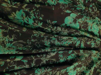 Seta jacquard fantasia floreale su fondo neroIn questo tessuto di seta pura, prodotto a Como, la lavorazione jacquard con il contrasto fra lucido e opaco, crea un piacevole effetto di tridimensionalità. Perfetto per la realizzazione di abiti ampi e sinuosi, grazie alla sua morbidezza e caduta, può essere utilizzato anche per capi più lineari che mettono in evidenza la ricchezza e la particolarità di questo tipo di tessuto.