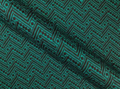 Seta jacquard fantasia geometrica su fondo turchese intensoIn questo tessuto di seta pura, prodotto a Como, la lavorazione jacquard con il contrasto fra lucido e opaco, crea un piacevole effetto di tridimensionalità. Perfetto per la realizzazione di abiti ampi e sinuosi, grazie alla sua morbidezza e caduta, può essere utilizzato anche per capi più lineari che mettono in evidenza la ricchezza e la particolarità di questo tipo di tessuto.