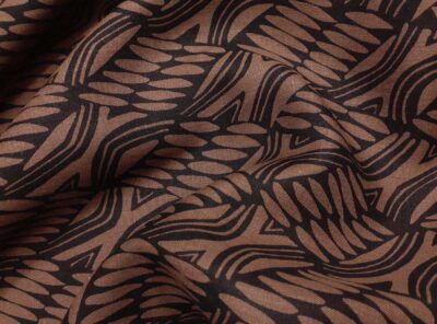 Crepe de Chine in seta fantasia geometrica nera su fondo avorioLa Crepe de Chine in pura seta, prodotta a Como, è un tessuto semi-opaco che si ottiene da una trama opaca che contrasta la lucentezza dell’ordito. Caratterizzata da mano leggera e morbida viene utilizzata per realizzare camicie, top, abiti e gonne morbide, pantaloni eleganti, lingerie etc.