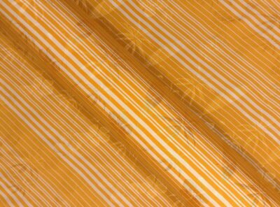 Crepe de Chine in seta a righe gialle e avorioLa Crepe de Chine in pura seta, prodotta a Como, è un tessuto semi-opaco che si ottiene da una trama opaca che contrasta la lucentezza dell’ordito. Caratterizzata da mano leggera e morbida viene utilizzata per realizzare camicie, top, abiti e gonne morbide, pantaloni eleganti, lingerie etc.