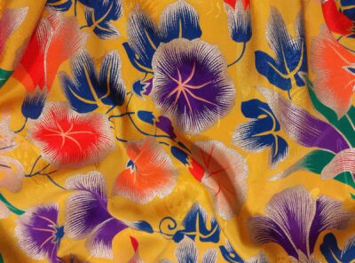 Seta jacquard fantasia floreale su fondo giallo