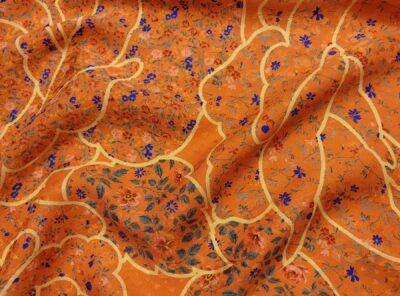 arancioIn questo tessuto di seta pura, prodotto a Como, la lavorazione jacquard con il contrasto fra lucido e opaco, crea un piacevole effetto di tridimensionalità. Perfetto per la realizzazione di abiti ampi e sinuosi, grazie alla sua morbidezza e caduta, può essere utilizzato anche per capi più lineari che mettono in evidenza la ricchezza e la particolarità di questo tipo di tessuto.