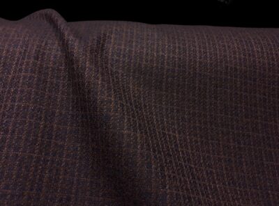 Flanella in lana e cashmere riquadri blu su fondo marroneQuesta flanella, prodotta a Biella, utilizzando lana e cashmere, ha peso medio-alto ed è perfetta per realizzare un capo autunnale. Calda,molto morbida con piacevole mano e corposità è perfetta per la realizzazione di capi spalla femminili, gonne e abiti lineari.