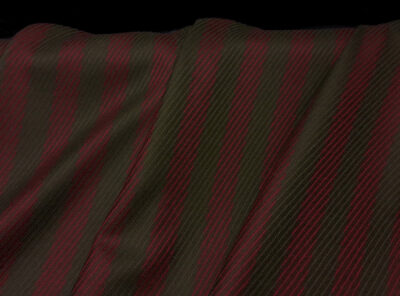 Cover morbido in lana e cashmere riga verde oliva e bordeauxQuesto è un tessuto cover in lana e cashmere prodotto a Biella, di peso medio ad armatura diagonale, con coste in rilievo. Molto caldo e morbido sii utilizza per gonne, abiti e capi spalla.