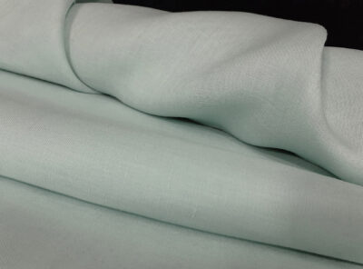 Tessuto in puro lino verde pallidoTessuto di peso mediopesante in puro lino doppio ritorto. Realizzato con la classica armatura a tela dove ogni filo di ordito si intreccia con ogni filo di trama ha mano fresca, lucentezza serica, rigidità e resistenza molto elevata. Perfetto per realizzare capi spalla, gonne, pantaloni e abiti diritti.