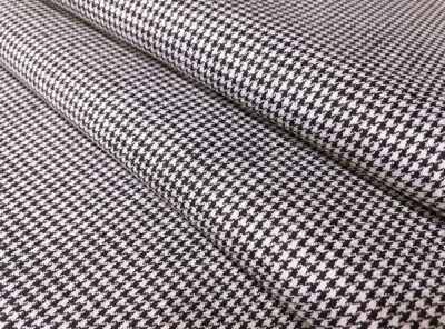 Puro lino pied de poule bianco e neroTessuto di peso mediopesante in puro lino doppio ritorto. Realizzato con la classica armatura a tela dove ogni filo di ordito si intreccia con ogni filo di trama ha mano fresca, lucentezza serica, rigidità e resistenza molto elevata. Perfetto per realizzare capi spalla, gonne, pantaloni e abiti diritti.