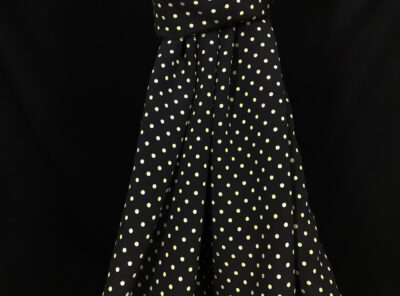 Crepe Marocaine in seta pois avorio su fondo neroLa Crepe Marocaine in pura seta è un tessuto lucido al rovescio e semi- lucido al diritto, decisamente piu pesante della crepe de chine. Caratterizzato da mano morbida ed eccellente caduta, viene utilizzato per realizzare gonne e abiti diritti ma fluidi, tailleur, pantaloni eleganti, etc.