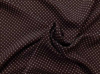 Tessuto in viscosa fantasia a pois fondo marroneIl popeline in viscosa è un tessuto leggero, liscio, compatto, molto morbido e setoso al tatto. Si contraddistingue per una notevole resistenza all’usura, al tempo e ai lavaggi. È perfetto per confezionare abiti e camicie.