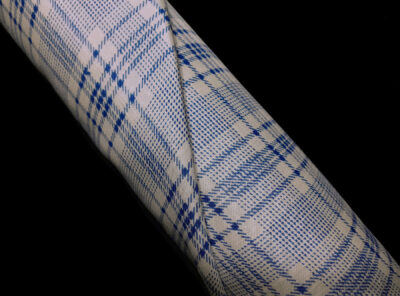 Seta Shantung fantasia Principe di Galles azzurroQuesto tessuto di seta, prodotto a Como, è stato realizzato utilizzando filati shantung molto ritorti e quindi poco irregolari. Si presenta compatto, poco rilevato, ma conserva le caratteristiche dello shantung ovvero la mano sostenuta e “croccante”. Ha un aspetto semi opaco conferito dall’ordito opaco e dalla trama lucida inoltre è un tessuto che non si stropiccia ed è resistente all’usura.