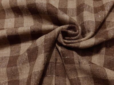 Tessuto in pura lana a quadretti beige e marrone melangeTessuto – prodotto dal lanificio Agnona – con armatura a stuoia ed effetti di filatura fiammati. La mano è morbida e corposa, ideale per la realizzazione di capispalla, abiti e gonne.