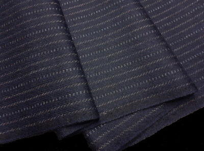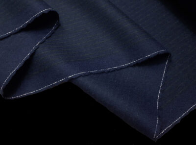 Tessuto in lana merino blu navy gessatoQuesta flanella gessata, prodotta a Biella, utilizzando lane merino, ha peso elevato ed è perfetta per realizzare un capo invernale. Calda, morbida con piacevole mano e corposità è perfetta per la realizzazione di capi spalla e gonne.