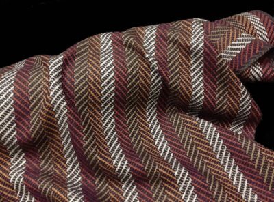 Lana pettinata a righe marrone bianco e bluTessuto ad armatura Twill – la più utilizzata nei tessuti di drapperia per le caratteristiche di robustezza e versatilità – prodotto a Biella in pura lana merino pettinata. Di peso medio-leggero ha mano morbida, non si stropiccia e non si usura nel tempo. Consigliato per la realizzazione di capi spalla femminili, pantaloni e gonne.