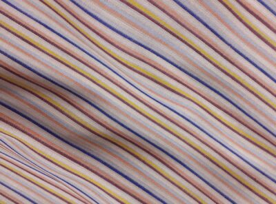 Seta per camicie tinta in filo a righe multicolori su fondo avorioLa seta tinta in filo – con colori quindi più resistenti – viene utilizzata per realizzare tessuti per camicie da uomo e donna. Ha mano morbida e moderatamente tesa.