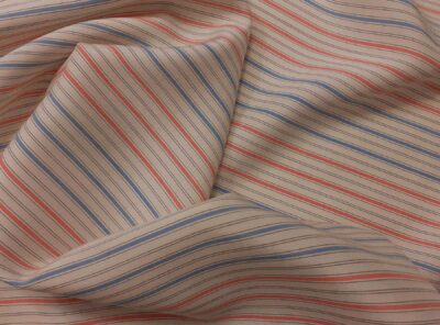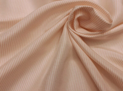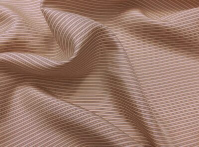 Seta per camicie tinta in filo a righe rosa su fondo avorioLa seta tinta in filo – con colori quindi più resistenti – viene utilizzata per realizzare tessuti per camicie da uomo e donna. Ha mano morbida e moderatamente tesa.