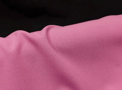 Crepe in pura lana rosaLa crepe di pura lana è un tessuto che ha una mano scattante e caduta morbida. Perfetto per tubini, si presta a gonne, pantaloni ampi classici, giacche, spolverini. Questo tessuto, dalla caratteristica superficie crespa, non si stropiccia e non è soggetto a ”pilling” grazie alla forte torsione del filato.