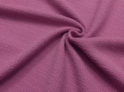 Jersey in pura lana rosa con disegno in rilievoQuesto jersey in pura lana di peso sostenuto è una stoffa a maglia con disegno jacquard in rilievo. Ha un peso considerevole, non si stropiccia ed è confortevole, caldo e morbido. Perfetto per realizzare abiti diritti, capi spalla e gonne.