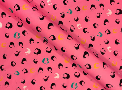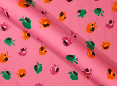 Popeline in cotone satinato fantasia astratta fondo rosaQuesto tessuto in puro cotone egiziano doppio ritorto, è un tessuto liscio, compatto e allo stesso tempo morbido e setoso al tatto. Si contraddistingue per una notevole lucentezza, una resistenza all’usura, al tempo e ai lavaggi. È perfetto per confezionare abiti e blouse ma può essere usato anche per capispalla.