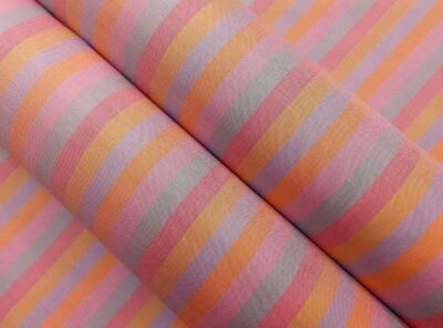 Tessuto per camicie popeline leggero righe multicoloriQuesto tessuto,in puro cotone, tinto in filo (con colori quindi molto resistenti), è un tessuto liscio, compatto e allo stesso tempo morbido. Ha la struttura del popeline ma più leggero, perfetto per confezionare camicie da uomo estive e camicie da donna.