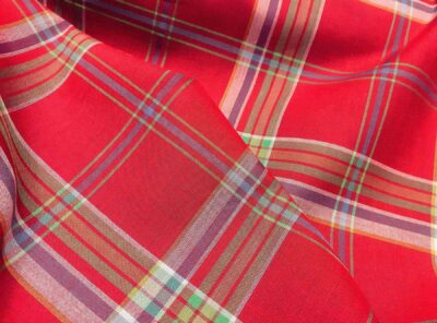 Tessuto per camicie voile fantasia Madras su fondo rossoIl Voile è un tessuto di gran pregio, molto morbido, leggero e trasparente, particolarmente indicato per la stagione estiva. Utilizzato soprattutto per la creazione di bluse, gonne vaporose o foulard.
