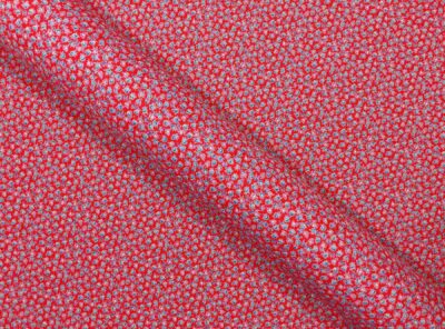Tela in cotone piccoli fiori su fondo rossoTessuto per abiti, gonne morbide e camicie di peso medio in puro cotone mercerizzato e ritorto. Ha mano morbida e aspetto lucente che si ottiene con la classica armatura a tela dove ogni filo di ordito si intreccia con ogni filo di trama.