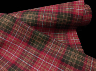 Tessuto in lana shetland scozzese rosso e verdeTessuto Shetland disegno scozzese di peso medio con lavorazione ad armatura diagonale. Confortevole e caldo, forte e durevole è stato realizzato con lana pregiata ed è perfetto per confezionare capi spalla e gonne.