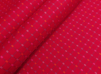 Popeline in cotone satinato fantasia astratta fondo rossoQuesto tessuto in puro cotone egiziano doppio ritorto, è un tessuto liscio, compatto e allo stesso tempo morbido e setoso al tatto. Si contraddistingue per una notevole lucentezza, una resistenza all’usura, al tempo e ai lavaggi. È perfetto per confezionare abiti e blouse ma può essere usato anche per capispalla.