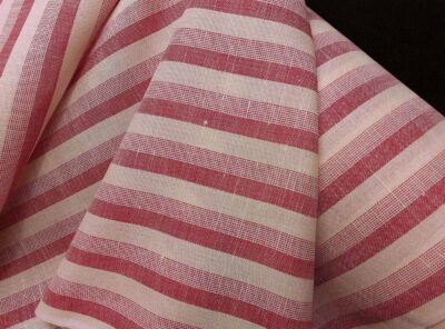 Tessuto in puro lino a righe rosso mattone su fondo avorio.Il lino, con il suo fascino senza tempo e il suo elevato indice di comfort, è il tessuto ideale per le camicie estive in quanto luminoso, resistente, termoregolatore, ipoallergenico. Tessuto nobile apprezzato da sempre per la sua bellezza e resa cromatica evidenziata dalla tintura in filo.
