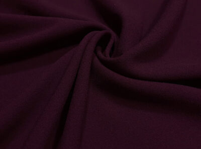 Crepe in pura lana bordeauxLa crepe di pura lana è un tessuto che ha una mano scattante e caduta morbida. Perfetto per tubini, si presta a gonne, pantaloni ampi classici, giacche, spolverini. Questo tessuto, dalla caratteristica superficie crespa, non si stropiccia e non è soggetto a ”pilling” grazie alla forte torsione del filato.