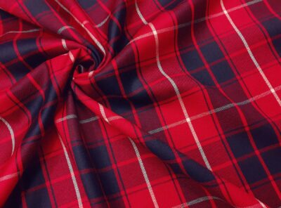 Tessuto in lana merino scozzese rosso e bluTessuto scozzese ad armatura Twill – la più utilizzata per le caratteristiche di robustezza e versatilità – prodotto a Biella in pura lana. Ha peso medio, mano calda e morbida, non si stropiccia e non si usura nel tempo. Consigliato per la realizzazione di capi spalla femminili,abiti e gonne.