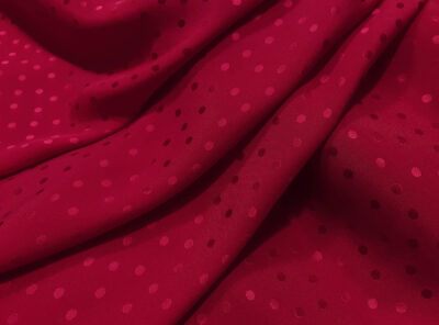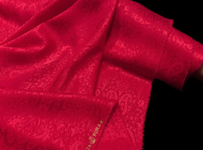 Seta jacquard tinta rossoIn questo tessuto di seta pura, prodotto a Como, la lavorazione jacquard con il contrasto fra lucido e opaco, crea un piacevole effetto di tridimensionalità. Perfetto per la realizzazione di abiti ampi e sinuosi, grazie alla sua morbidezza e caduta, può essere utilizzato anche per capi più lineari che mettono in evidenza la ricchezza e la particolarità di questo tipo di tessuto.