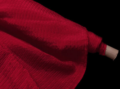 Seta jacquard graffata tinta rossoIn questo tessuto di seta pura, prodotto a Como, la lavorazione jacquard con il contrasto fra lucido e opaco, crea un piacevole effetto di tridimensionalità. Perfetto per la realizzazione di abiti ampi e sinuosi, grazie alla sua morbidezza e caduta, può essere utilizzato anche per capi più lineari che mettono in evidenza la ricchezza e la particolarità di questo tipo di tessuto.