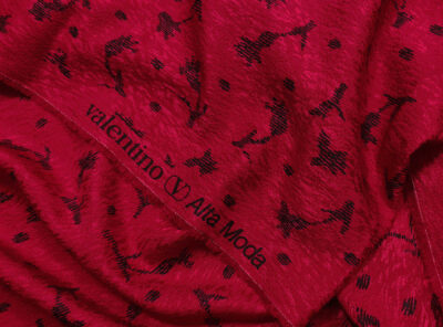 Seta jacquard fantasia floreale su fondo rosso. Valentino Miss VIn questo tessuto di seta pura, prodotto a Como, la lavorazione jacquard con il contrasto fra lucido e opaco, crea un piacevole effetto di tridimensionalità. Perfetto per la realizzazione di abiti ampi e sinuosi, grazie alla sua morbidezza e caduta, può essere utilizzato anche per capi più lineari che mettono in evidenza la ricchezza e la particolarità di questo tipo di tessuto.