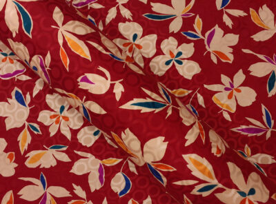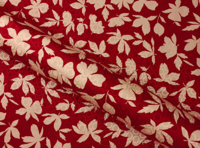 Seta jacquard fantasia floreale su fondo rossoIn questo tessuto di seta pura, prodotto a Como, la lavorazione jacquard con il contrasto fra lucido e opaco, crea un piacevole effetto di tridimensionalità. Perfetto per la realizzazione di abiti ampi e sinuosi, grazie alla sua morbidezza e caduta, può essere utilizzato anche per capi più lineari che mettono in evidenza la ricchezza e la particolarità di questo tipo di tessuto.