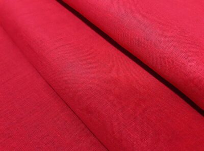 Tessuto in puro lino rossoTessuto di peso medioleggero in puro lino doppio ritorto. Realizzato con la classica armatura a tela dove ogni filo di ordito si intreccia con ogni filo di trama ha mano fresca, lucentezza serica, rigidità e resistenza molto elevata. Perfetto per realizzare abiti, gonne e camicie.