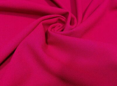 Crepe in pura lana tinta rosa shockingLa crepe di pura lana è un tessuto che ha una mano scattante e caduta morbida. Perfetto per tubini, si presta a gonne, pantaloni ampi classici, giacche, spolverini. Questo tessuto, dalla caratteristica superficie crespa, non si stropiccia e non è soggetto a ”pilling” grazie alla forte torsione del filato.