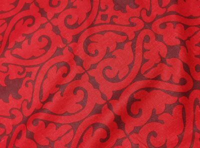 Puro lino fantasia astratta colore melanzana su fondo rossoTessuto di peso mediopesante in puro lino doppio ritorto. Realizzato con la classica armatura a tela dove ogni filo di ordito si intreccia con ogni filo di trama ha mano fresca, lucentezza serica, rigidità e resistenza molto elevata. Perfetto per realizzare capi spalla, gonne, pantaloni e abiti diritti.