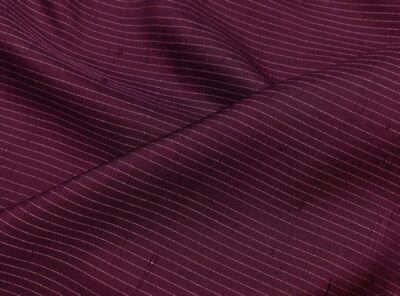 Seta shantung bordeaux gessato biancoQuesto Shantung realizzato con seta selvaggia (tussah) ricavata da bozzoli non allevati, viene prodotto a Como, utilizzando telai tradizionali ( altezza del tessuto 75 cm), si differenzia dallo Shantung normale per una superficie più ruvida, molto irregolare e dall’aspetto più grezzo.