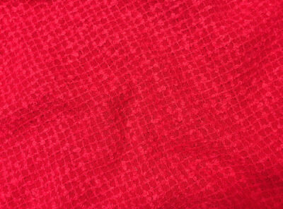 Chanel morbido effetto “bouclè” rossoIn questo tessuto Chanel gli effetti di filatura bouclé sono intrecciati con filati pettinati più resistenti. Di peso leggero ha mano morbida e corposa, ideale per la realizzazione di capispalla, abiti e gonne.