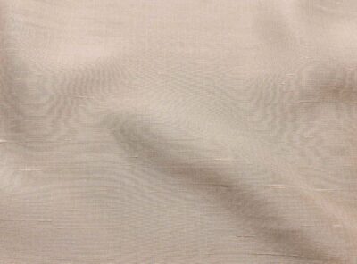 Seta shantung beige chiaro gessato biancoQuesto Shantung realizzato con seta selvaggia (tussah) ricavata da bozzoli non allevati, viene prodotto a Como, utilizzando telai tradizionali ( altezza del tessuto 75 cm), si differenzia dallo Shantung normale per una superficie più ruvida, molto irregolare e dall’aspetto più grezzo.