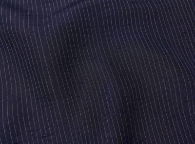 Seta shantung blu gessato biancoQuesto Shantung realizzato con seta selvaggia (tussah) ricavata da bozzoli non allevati, viene prodotto a Como, utilizzando telai tradizionali ( altezza del tessuto 75 cm), si differenzia dallo Shantung normale per una superficie più ruvida, molto irregolare e dall’aspetto più grezzo.