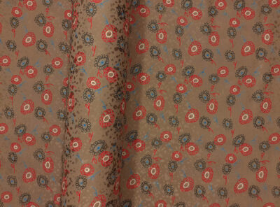 Seta jacquard fantasia stilizzata floreale su fondo camoscioIn questo tessuto di seta pura, prodotto a Como, la lavorazione jacquard con il contrasto fra lucido e opaco, crea un piacevole effetto di tridimensionalità. Perfetto per la realizzazione di abiti ampi e sinuosi, grazie alla sua morbidezza e caduta, può essere utilizzato anche per capi più lineari che mettono in evidenza la ricchezza e la particolarità di questo tipo di tessuto.