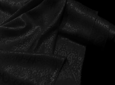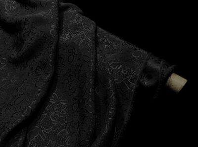 Seta jacquard tinta neraIn questo tessuto di seta pura, prodotto a Como, la lavorazione jacquard con il contrasto fra lucido e opaco, crea un piacevole effetto di tridimensionalità. Perfetto per la realizzazione di abiti ampi e sinuosi, grazie alla sua morbidezza e caduta, può essere utilizzato anche per capi più lineari che mettono in evidenza la ricchezza e la particolarità di questo tipo di tessuto.
