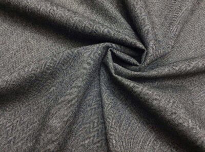 Tessuto in lana merino e cashmere spigato grigio scuroTessuto spigato ad armatura Twill – la più utilizzata nei tessuti di drapperia per le caratteristiche di robustezza e versatilità – prodotto a Biella in lana pettinata e cashmere. Di peso medio non si stropiccia. Consigliato per la realizzazione di capi spalla femminili e gonne.